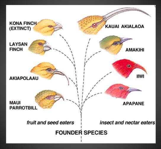 What is most likely the cause of the differences in the birds in the picture? A) interbreeding B) change in diet C) mutations in DNA Eliminate D) mutagens in the environment