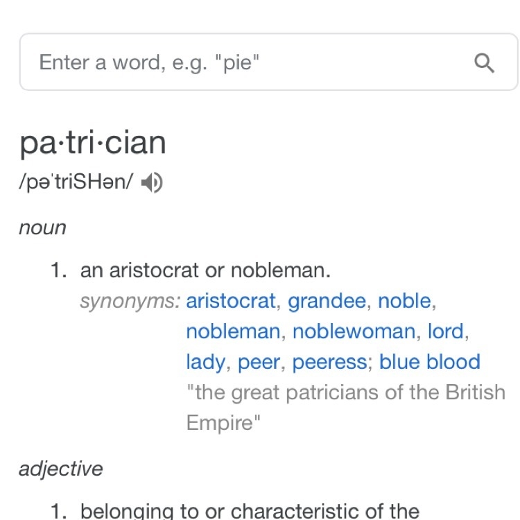 The definition of patrician includes the word nobleman, which was not included in the other definitions.