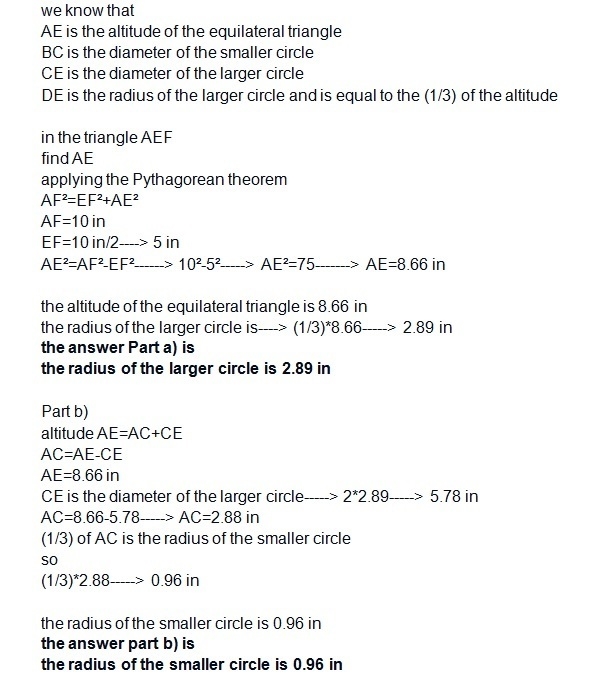 Thus radius of large circle is one third of equilateral triangle altitude.