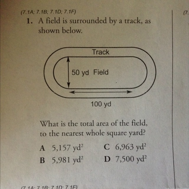 What you need to do is separate the shape of the field into one rectangle and two halves of a circle.