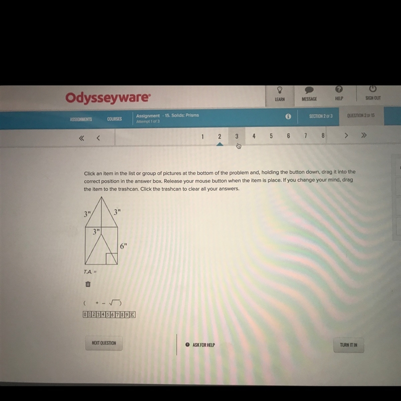 Area of the base of the prism: Ab=Area of the equilateral triangle