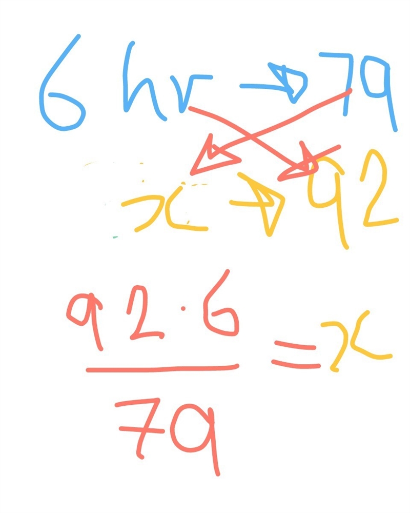N english instructor asserted that students' test grades are directly proportional to the amount of time spent studying. lisa studies 6 hr for a particular test and gets a score of 79. at this rate, how many hours would she have had to study to get a score of 92?