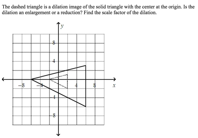 Take for example down right point of the solid triangle (-6, -6). The correspondent point of the small triangle is (-2, -2), so it is 3 times smaller.