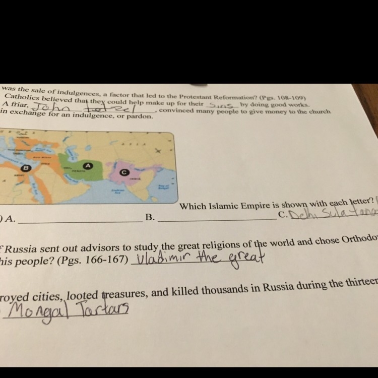 Which Islamic empire is shown with each letter??