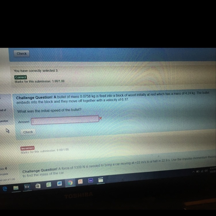 (0.0758 kg) x (speed of bullet) = 26.6285 kg-m/s