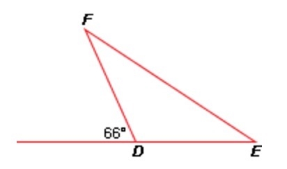 Step 1) Find angle FDE. This angle adds with the 66 degree angle to get 180 degrees.