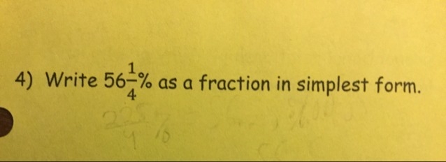 It would be: = 56 1/4 % = 225/4% = 225/4/100 = 225/400 = 9/16