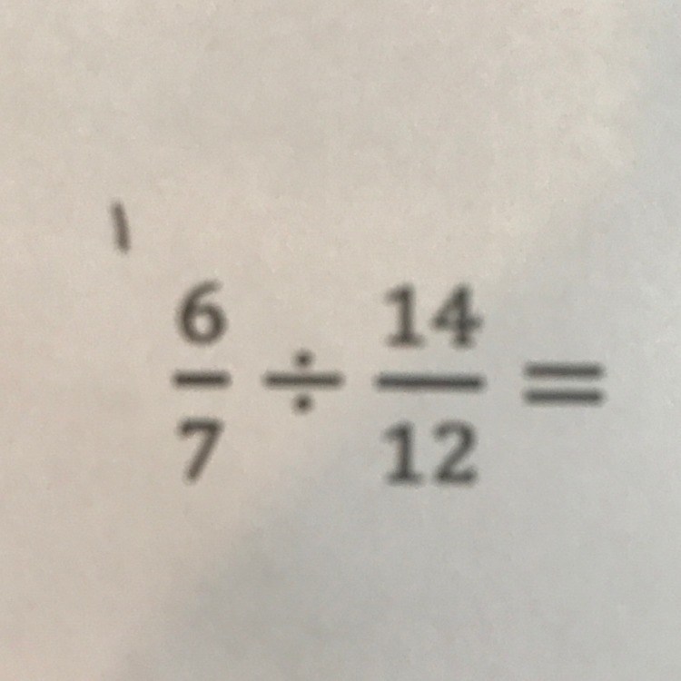 You take the second fraction and flip it (it will be 12/14) and you multiply straight across. You get 72/98. You simplify it by finding it's greatest common factor (in this case it is 2) so you divide it the numerator and the denominator by 2. You get 36/49.