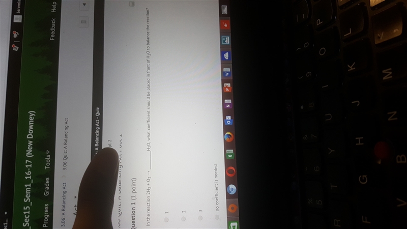 In the reaction 2h2 + 02 h2o what coefficient should be placed in front of h20 to balance the reaction