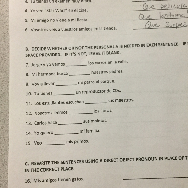 8, 9, 11, 14 and 15. It is used when a person/persons or pet is the direct object.