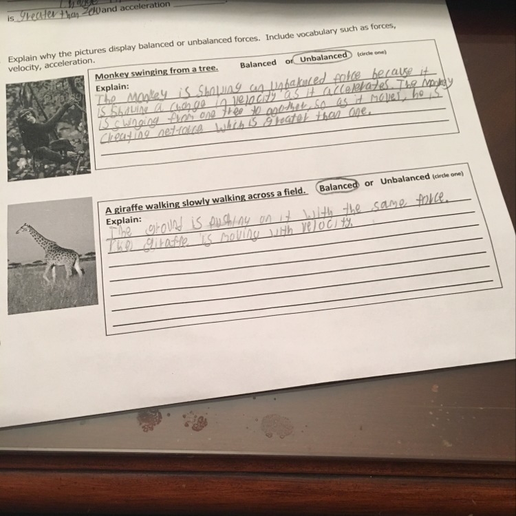 Is a giraffe walking slowly across a field a balanced force or a unbalanced force?