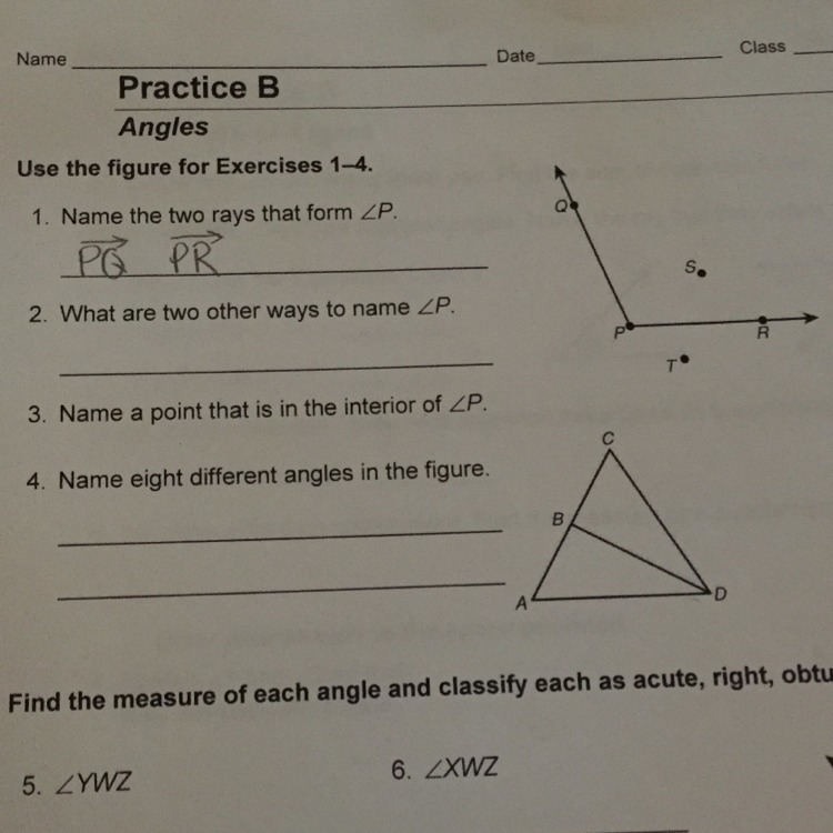 This angle could be named in three ways: <P, <QPR, or <RPQ