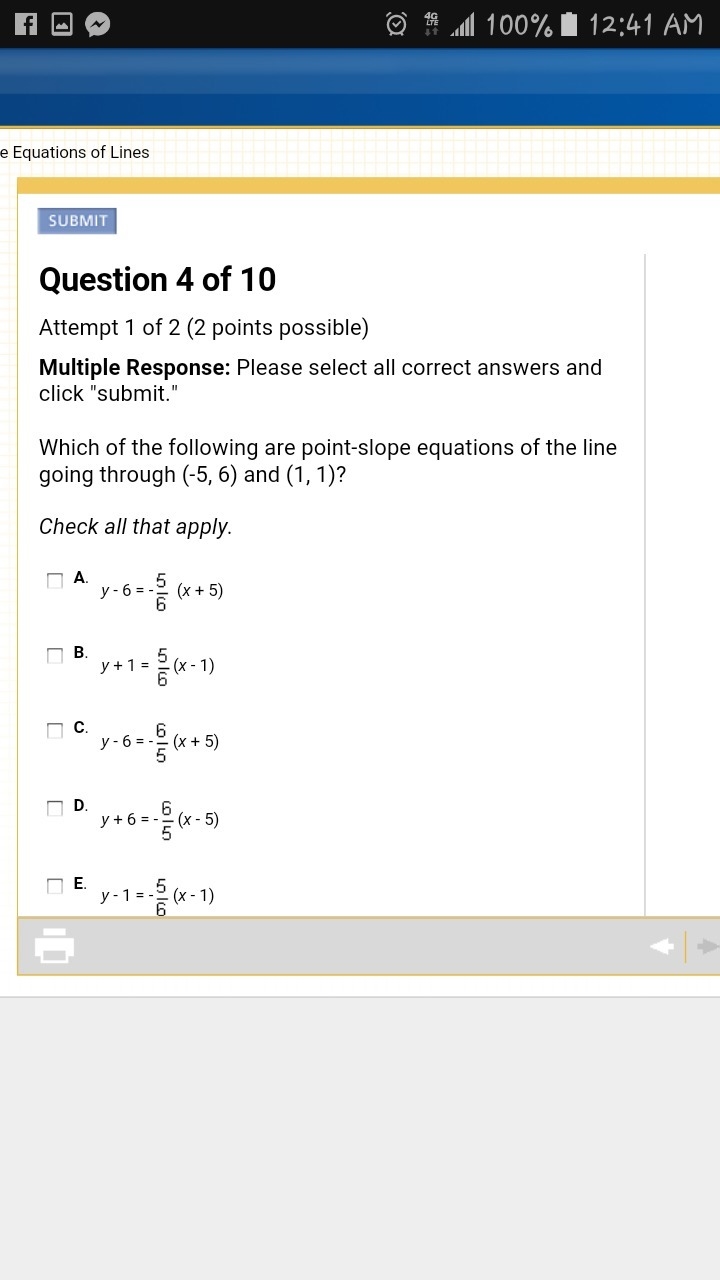 Now, Take first coordinate: y - 6 = -5/6 (x + 5)