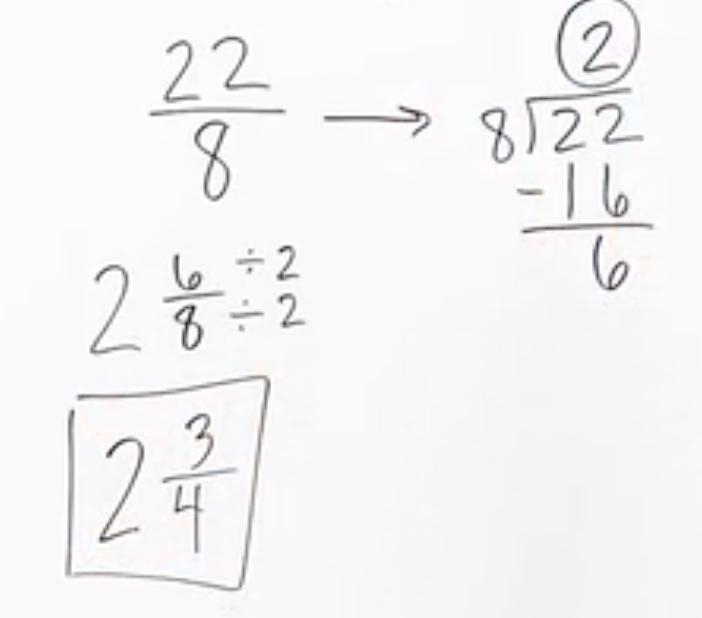 Explanation: We can write 22/8 as a mixed number by dividing the denominator into the numerator or 8 into 22.