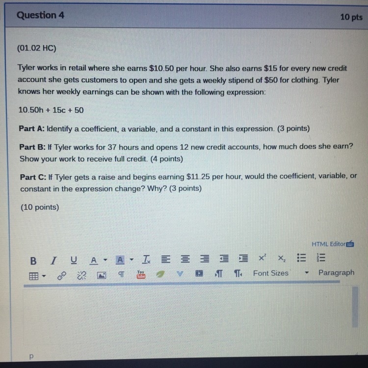 Part A. h and c are variables 10.15 and 15 are coefficients 50 is the constant