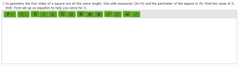 For number three just remember that a square has for sides so you would just multiply one side length times 4 and set it equal to the whole like this: