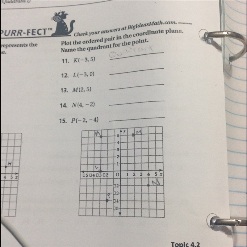 This is simple. Since you already plotted the points you just have to see which box the point is in. The top right box is Quadrant I. The top left box is Quadrant II. The bottom left box is Quadrant III. And finally, the bottom right box is Quadrant IV. Also, if the point ever lands on the x- or y- axis, just say it is between Quadrant _ and Quadrant _.