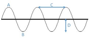 Thus, from the given graph we conclude that D is the amplitude because it is the distance between a crest (or trough) and rest. While C determine the wavelength of the wave.