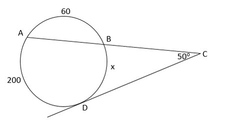 What is the value of x in the diagram? A. 100 B. 120 C. 60 D. 50