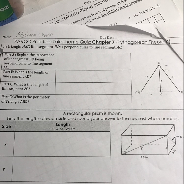 if a^2 + b^2 = c^2 (it does), then we can say AD is a, BD is b, and AB is c.