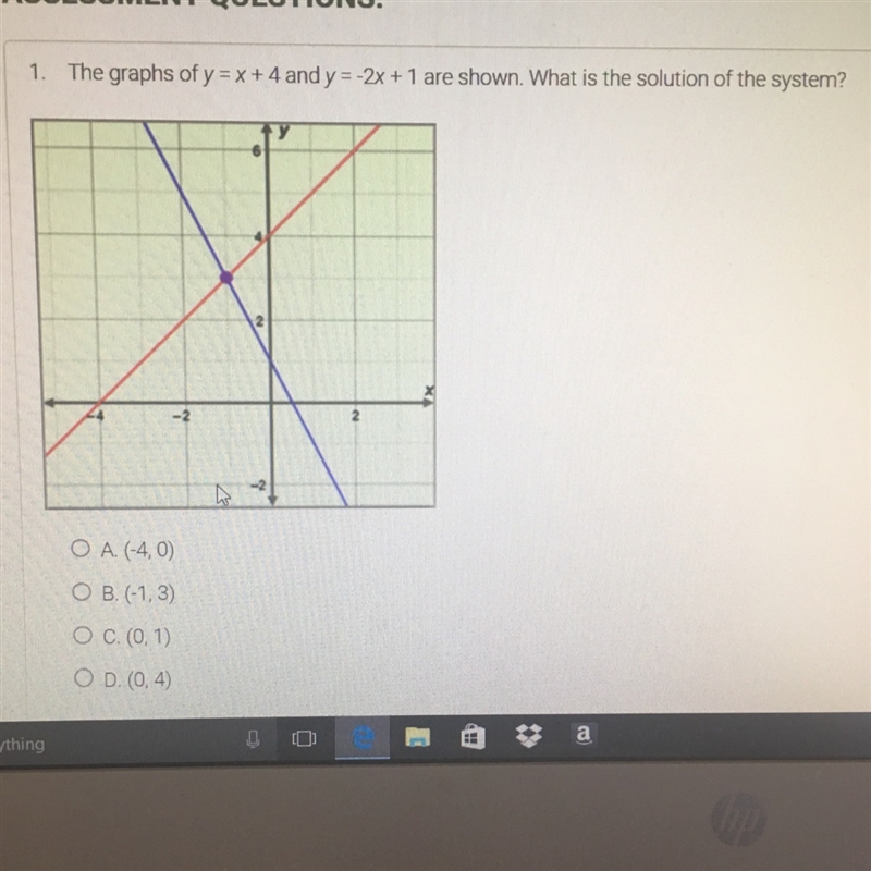 the answer is B. (-1,3) hope this helped