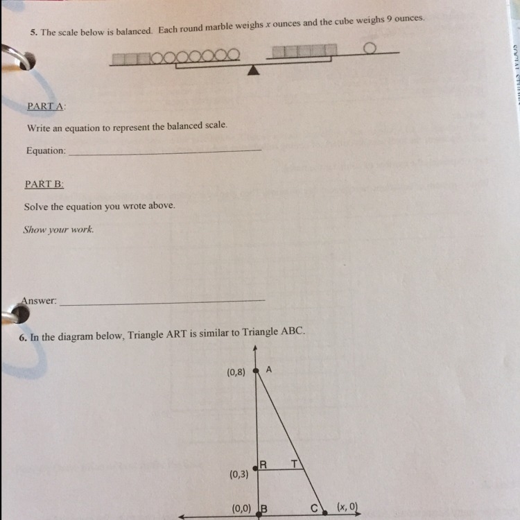 Now for the right side. There are 5 cubes so 5 times 9 ounces is 45 so that belongs on the left. And then there is one cube so we can just right x. SO for the right side (combined with the other parts we know looks like this.