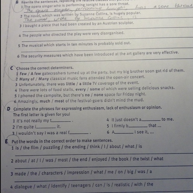 HELP ME WITH ENGLISH B, C, D, E Anything else pls