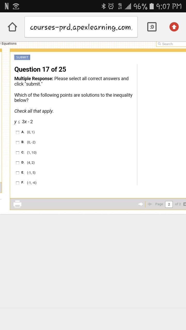 Which of the following points are solutions to the inequality below? Check all that apply.