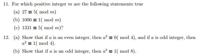 For 1a question can thought as an equation mk+5=27 the k represents any number 1,2,3,...n but you can treat it as k=1 since it is used to find others numbers that can give you x congruent 5(mod m). Any ways so m+5=27 just solve for m and that will give you solution.