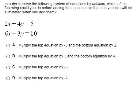 multiply the top one by 3 for x, so you can eliminate x and find y