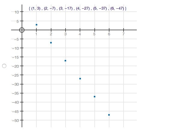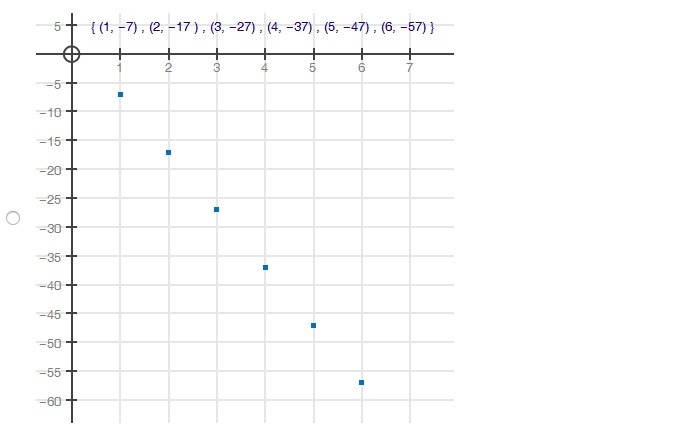 Graph the first six terms of a sequence where a1 = −10 and d = 3. Choices are below Please help me