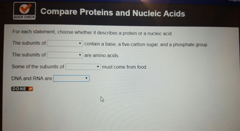 The first is nucleic acid; the next is a protein; the next is protein also ; and last one is nucleic acid.