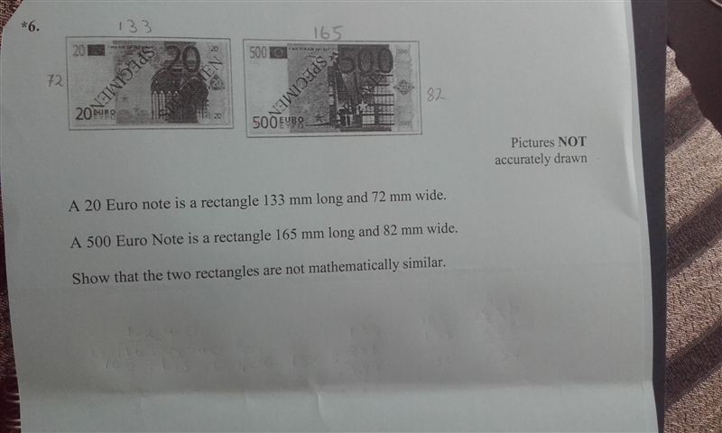 You have to show how they do not have a ratio equal to eachother. So, as an example, the first euro is smaller, but you have to see it's ratio. But the thing about the smaller euro, you cannot simplify it, so it is technically impossible to do this. I am not sure if this is the way to do this, as Its 4:37 and I woke up due to a large clap of thunder and im really tired. But hopefully this helps.