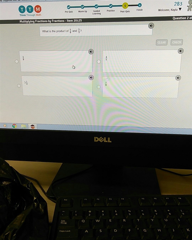 (5/2) x (2/3) = (5 x 2) / (6 x 3) = 10/18 = 5/9