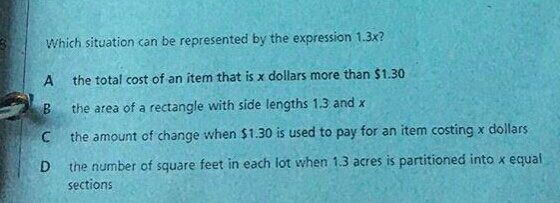 Area is equal to length times width, so 1.3x would represent the area. B is the answer.