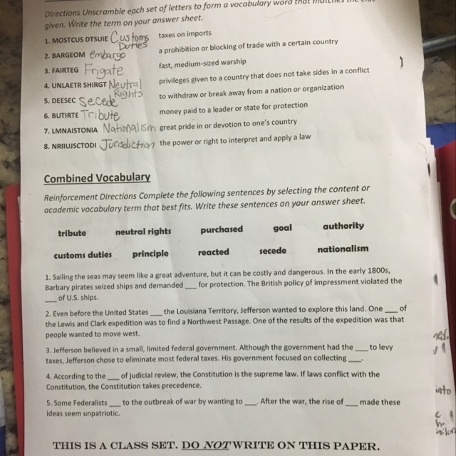 Please help me on numbers 1-5 in the Combined Vocabulary part( second bottom part)