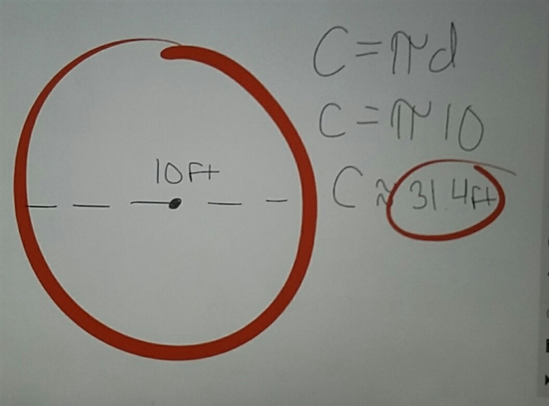 Brad is putting up a 10 foot diameter circular flower garden in his yard. He will put plastic edging along the flowerbed. How many feet of edging will Brad need to enclose his flower garden? WORK SHOWN!!! DUE TODAY HELP PLZ!!