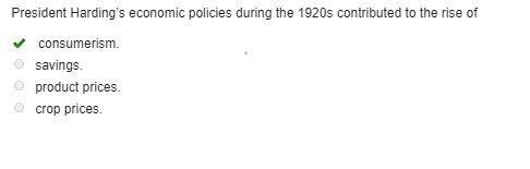 President Harding’s economic policies during the 1920s contributed to the rise of-example-1