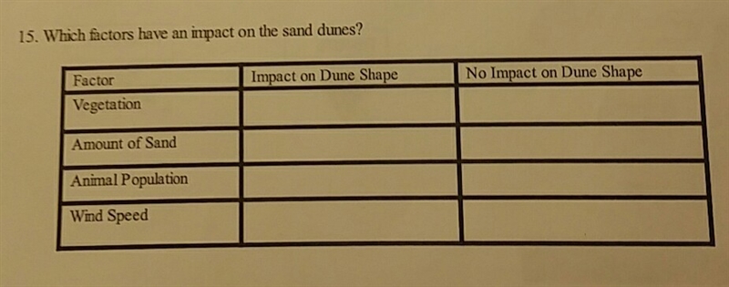Which Factors have an impact on the sand dunes?