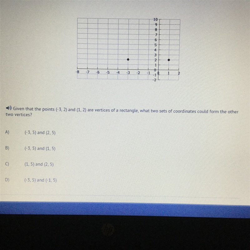 It's B. If you draw those 2 points and then connect them together they will form a rectangle.