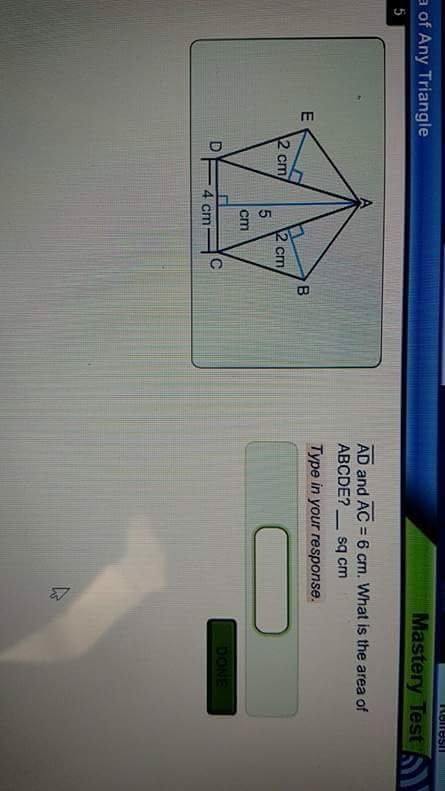 Line AD and Line AC = 6. What is the area of ABCDE? ____ sq cm