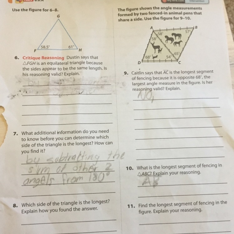 Your answer for 9 is wrong. The answer is yes because the largest angle = the largest side.
