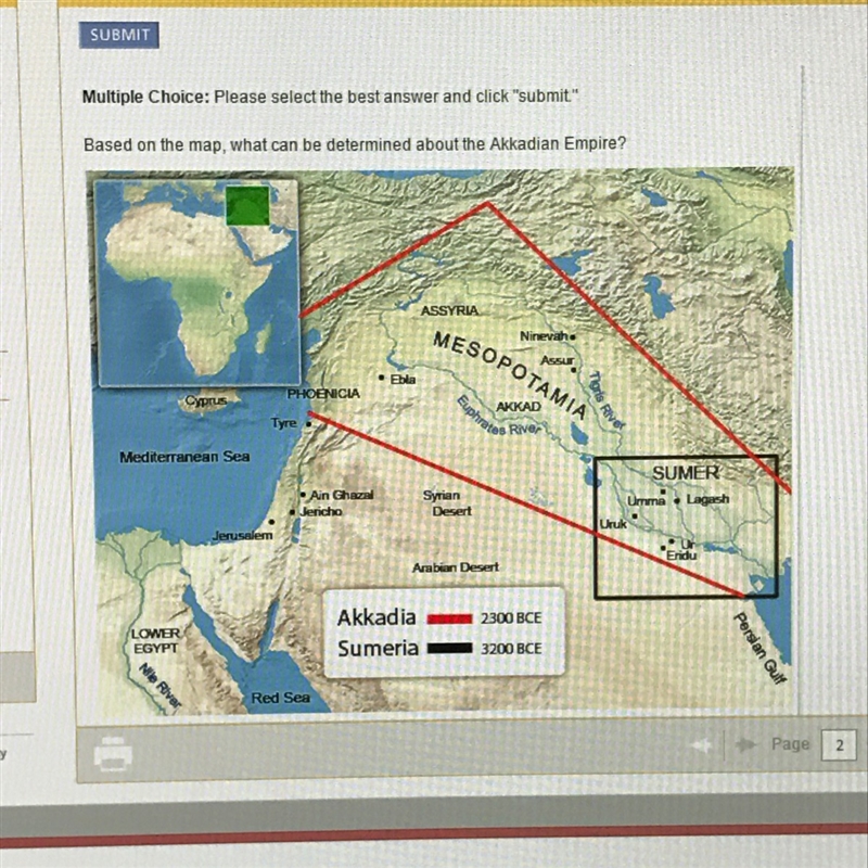 A) It was conquered by the rulers of Egypt? B)it conquered all the territory bordering the Persian gulf C)it was conquered by the rulers of Sumer D) it conquered most of the Sum…