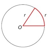 In the diagram, the measure of angle O is ______. a. 2π radians b. 1 radian c. 60 degrees d. π radians