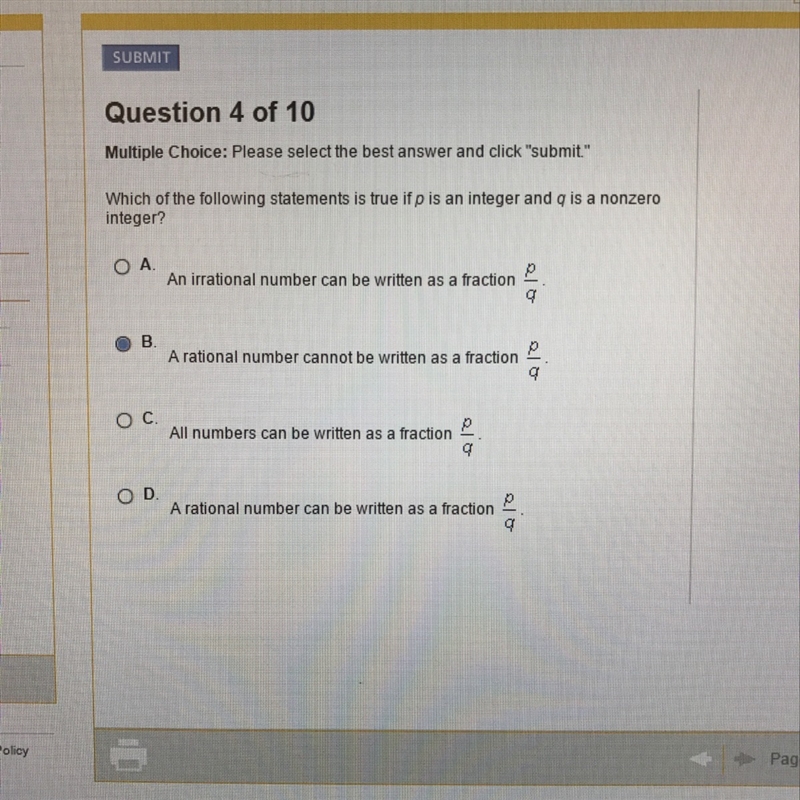 i believe it is A. hope this helps