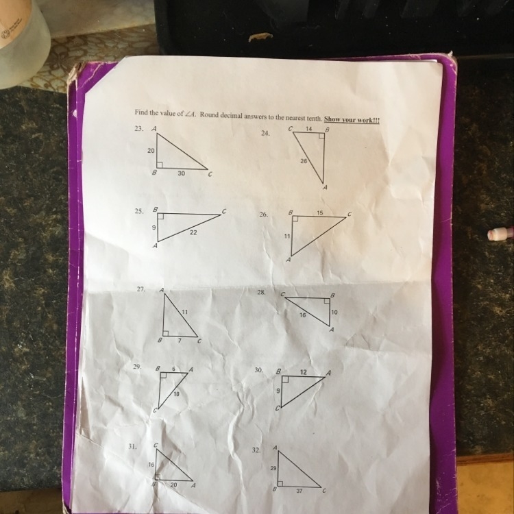 * Whenever you are solving for angle measures inside right triangles, ALWAYS use the inverse trigonometric ratios.