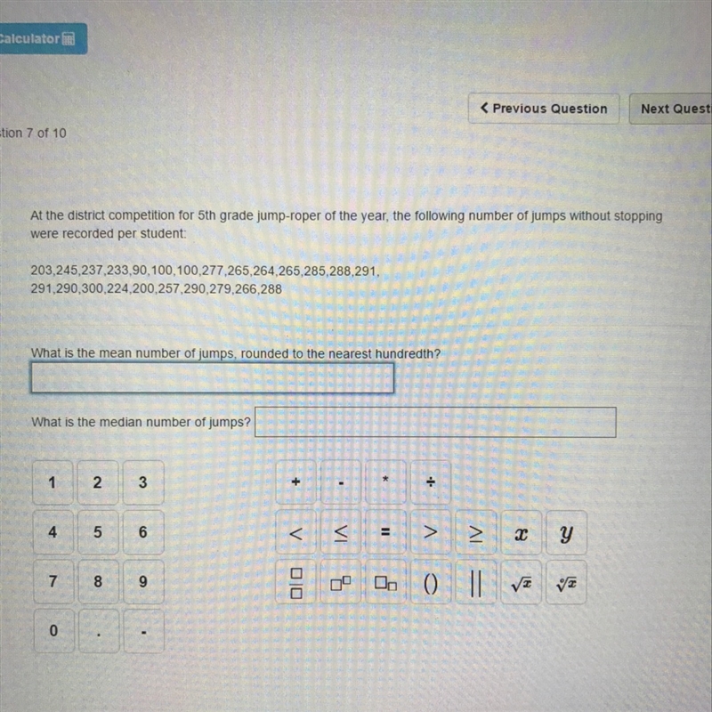 This took me quite a long time but the mean is 242.833333 and the median is 265. If you round the mean to the nearest hundredths it is 242.8 and you won't need to round the median that is 265.