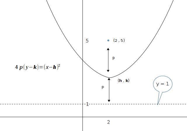 then plug all three p,h,k in the equation 4p(y - k) = (x - h)²