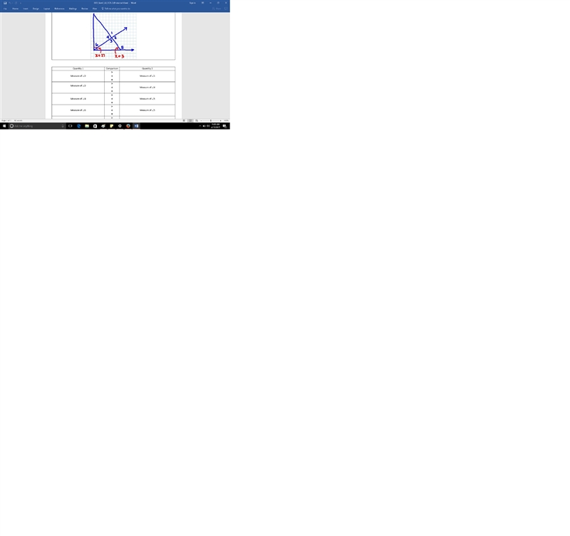The measure of angle 3 is equal to 5(33) - 81 = 84°. The missing angles written in red have relationship with angle 3 in such that,