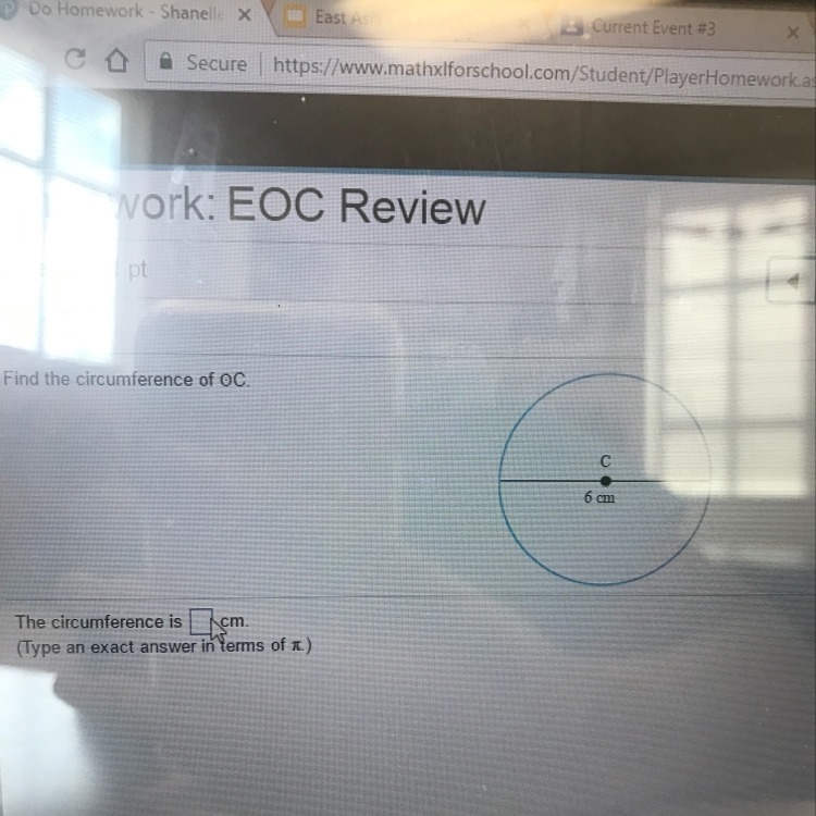 3 is the radios and to find the curcumfrencfe of a cirle you have to multiply the radios by pi